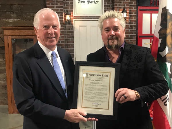 Celebrity chef Guy Fieri was honored by Congressman Mike Thompson at the Fifth Congressional District’s Public Safety Hero Award event on Sunday, February 10, 2019. Photo courtesy of Congressman Mike Thompson’s office.