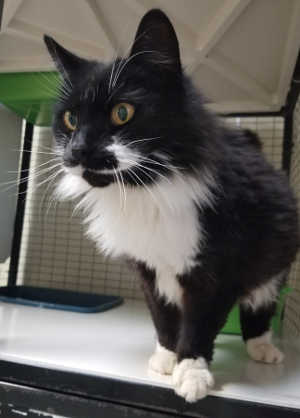 This female tuxedo cat is in cat room kennel No. 95, ID No. 11699. Photo courtesy of Lake County Animal Care and Control. Female tuxedo cat