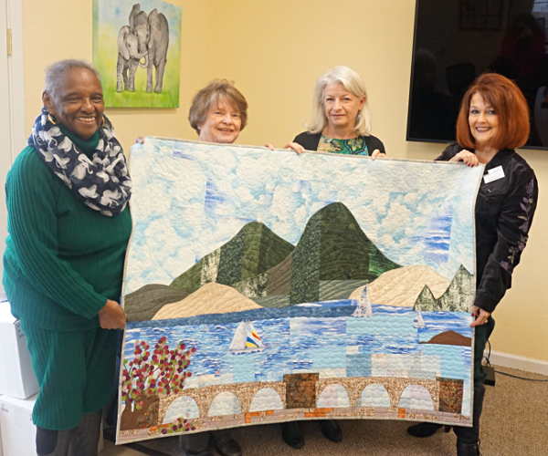 On Tuesday, as Krasnovsky, Morrow and Salituri met at Lake Family Resource Center’s Kelseyville offices, local resident Susan Cameron and Susan Blair of Santa Rosa stopped by to donate a quilt made by Blair that shows Clear Lake and Mt. Konocti.