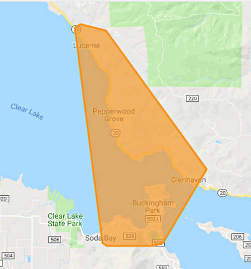 The outage is reported to be impacting 2,827 customers from Lucerne to Glenhaven and across the lake in the Soda Bay and Buckingham Park areas of Kelseyville.