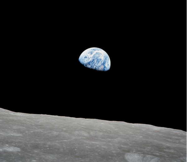 At the beginning of the fourth revolution, as they were about to round the backside of the moon, the astronauts caught sight of the Earth appearing above the lunar limb.