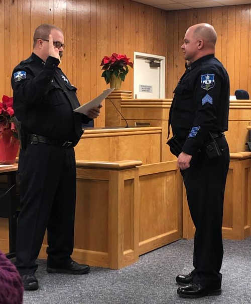 Chief Brad Rasmussen administered the oath to Sgt. Michael Davis during a Monday morning ceremony at Lakeport City Hall.