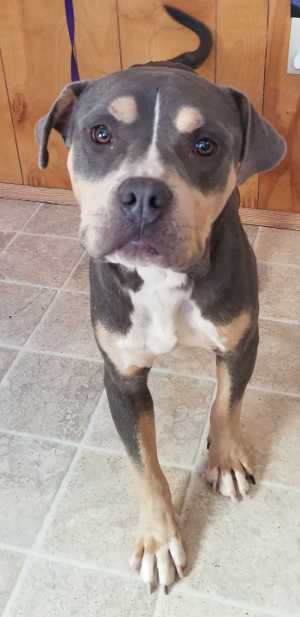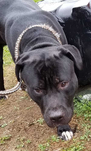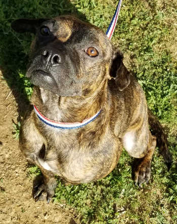 “Hazel” Is a female cane corso mastiff-pit bull terrier mix.