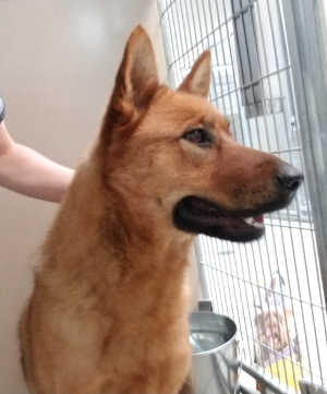 This female chow chow-shepherd mix has a medium-length orange coat.