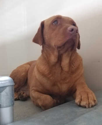 This female Labrador Retriever is in kennel No. 18, ID No. 11239. Photo courtesy of Lake County Animal Care and Control. Female Labrador Retriever
