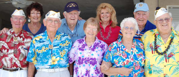 This picture from August 2010 shows several Pearl Harbor survivors and sweethearts who had made Lake County, Calif., their home. Front row, left to right, are Bud Boner, Walter Urmann, Alice Darrow (husband Dean) Vanya Leighton (husband Fred) and Jim Harris; back row, child survivor Jackie Wages, Bill Slater, child survivor Penny Lunt and Henry Anderson. Boner, Urmann, Harris, Slater and Anderson have since died. Photo courtesy of Janeane Bogner. LAKEPORT, Calif. – The public is invited to participate in a ceremony on Friday, Dec. 7, commemorating the 77th anniversary of the attack on Pearl Harbor.