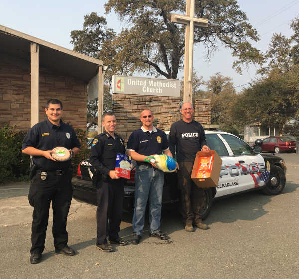 This year, Peterson said the association was advised that the Clearlake Methodist Church and Clearlake Church of Latter-day Saints were provided turkeys to donate to families. Working with the churches, the Clearlake Police Officers Association purchased all of the side dishes and desserts to go with the turkeys.