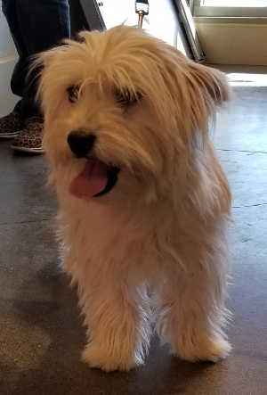 This male terrier mix has a long white coat.