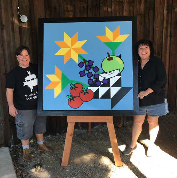 Dancing Poly's Basket has joined the Lake County Quilt Trail in Lake County, Calif. Shown here are Bess Giannakakis and Blaise Bahara. Photo courtesy of the Lake County Quilt Trail. LAKEPORT, Calif. – “Dancing Poly’s Basket” is the latest quilt block on the Lake County Quilt Trail.