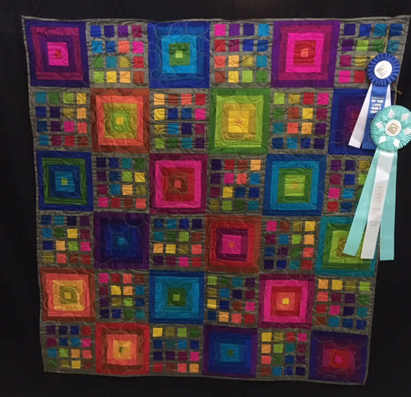 The 2018 Opportunity Quilt will find a home on Sunday afternoon when the winning ticket will be drawn. Tickets will be available at the table in front of the stage in the Little Theater throughout the show. This scrappy quilt with a traditional look called “Kentucky Log Cabin” is an original design by Judy Martin. This quilt was pieced by guild members and quilted by Cindy Jo of Fort Bragg.