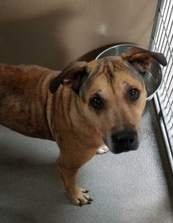 This female pit bull terrier is in kennel No. 19, ID No. 11136. Photo courtesy of Lake County Animal Care and Control. Pit bull terrier