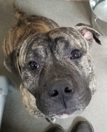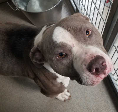 This female pit bull terrier is in kennel No. 8, ID No. 11074. Photo courtesy of Lake County Animal Care and Control. Pit bull terrier