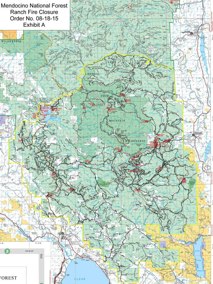 The Ranch fire area is closed as described in Forest Order 08-18-15. The purpose of the closure is to provide for public safety and for the firefighters who are engaged in repair efforts within the Ranch Fire closure area. The closure area applies to all public use, including hunting, the use of firearms and off-highway vehicles.