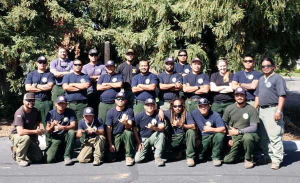 Marlon Garde, Shelwyn Taisacan, Jamaal Mresbang, Mizutani and Kaipat performed as sawyers for the first time since completing the wildland power saws course that the Mendocino National Forest presented to them this summer. They are joined by crew members Kyoshi Kileleman, Mathew Dela Cruz, Joseph Sablan, Raccine Hizon, Lucio Kalen, Sammy Litulumar, Matthew Duenas and Stanley Santos.