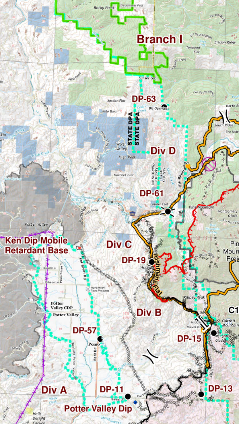 Burchett, who was leading a Utah multi-agency task force, and a strike team of type four engines from Kings County were assigned to the Ranch fire’s Branch I, Division C on the Mendocino County side of the fire in the Middle Mountain Range, approximately 500 yards north of Irishman’s Flat at an elevation of 3,000 feet.