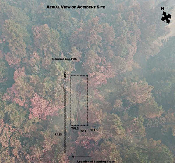 At 5:25 p.m., the Aerial Supervision Module proceeded on a final approach over the drop path, identifying the drop path to the VLAT by use of a smoke trail, the report said.