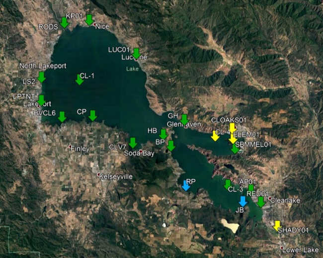 Four of those sites resulted in caution trigger levels: the center of the Oaks Arm, Clearlake Oaks shoreline, Elem shoreline and Cache Creek at Highway 53.