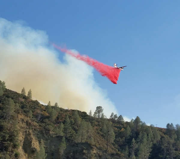 Both air and ground resources worked the fire, with tankers and copters clearing ahead of nightfall.