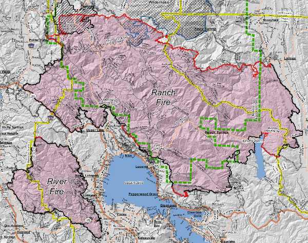 The Ranch Fire continued to spread into the Snow Mountain Wilderness, burning past Letts Lake Friday afternoon. Moore said the Ranch fire also burning in the Berryessa Snow Mountain National Monument.