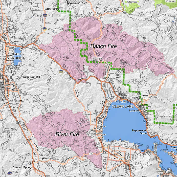 The evacuation advisory has been canceled for areas east of Highland Springs Road, west of Soda Bay Road, and north of the Lake/Sonoma County line and south of Clear Lake.