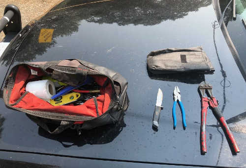 During a search of his vehicle officers located a bag containing bolt cutters, pliers and a large knife.