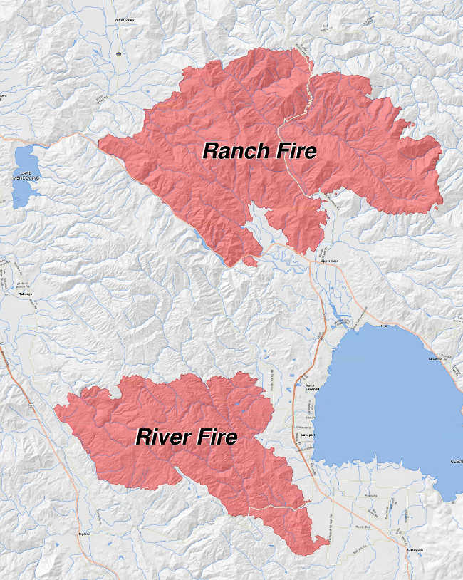 • North of Bartlett Springs Road, east of the Ranch Fire, south of the Lake-Mendocino-Glenn