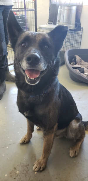 “Max” is a 2-year-old male kelpie-pit bull mix who weighs about 50 pounds.