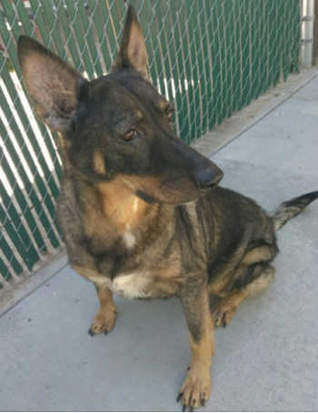 “Lala” is a female German Shepherd with a brown and black coat.