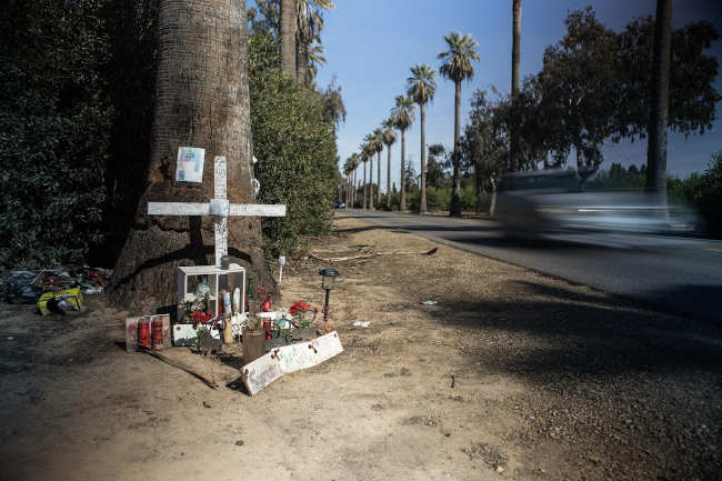 A memorial for car accident victims on a roadside outside Fresno on March 20, 2025. Photo by Larry Valenzuela, CalMatters/CatchLight Local The gun metaphor was common in the thousands of vehicular manslaughter cases we looked at across California. One prosecutor described dangerous behavior behind the wheel as akin to firing a gun into a crowd.