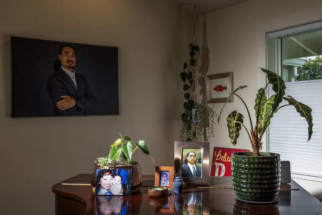 Framed photos of Dominic at Nora Lopez's home in Castro Valley on March 12, 2025. Photos by Christie Hemm Klok for CalMatters