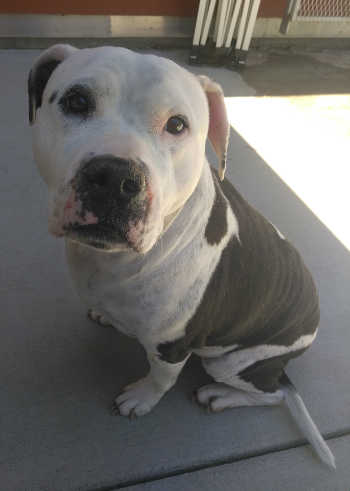 This male pit bull terrier is in kennel No. 29, ID No. 10217. Photo courtesy of Lake County Animal Care and Control. Male pit bull terrier