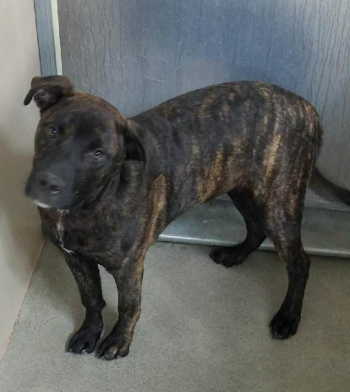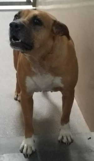 “Daisey May” is a female boxer-pit bull mix in kennel No. 12, ID No. 10114. Photo courtesy of Lake County Animal Care and Control.