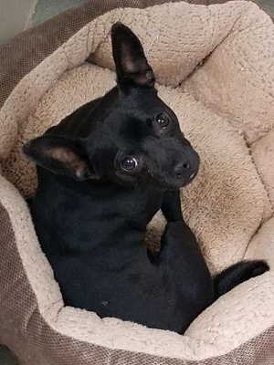 This male Chihuahua has a short black coat.