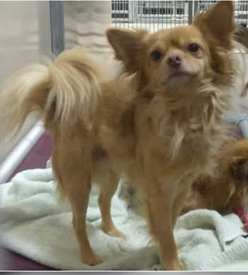 “Sparky” is a male Chihuahua with a short brown coat.