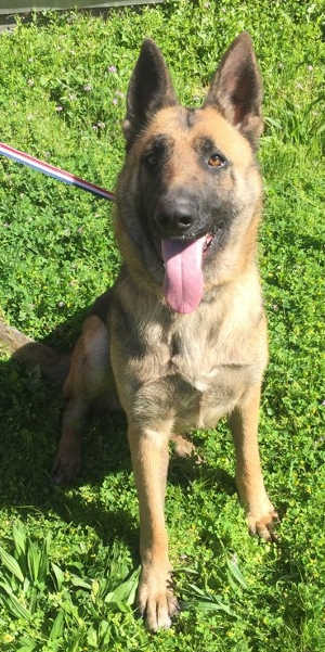 “Beauty” is a female German Shepherd with a medium-length black and tan coat.