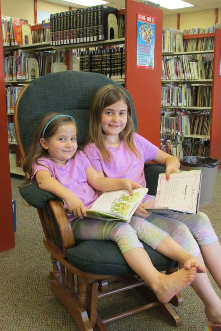 Library Kids Rylee and Payton enjoy reading and sharing some laughs at the library, in Lake County, Calif. The Lake County Library’s Summer Reading Program is in full swing and readers of all ages can still sign up. Courtesy photo.