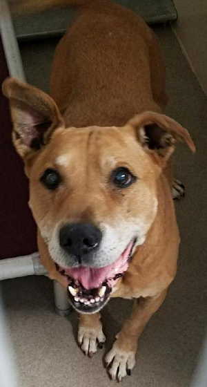 This male Labrador Retriever-pit bull mix is in kennel No. 34, ID No. 10082. Photo courtesy of Lake County Animal Care and Control. Labrador Retriever-pit bull mix