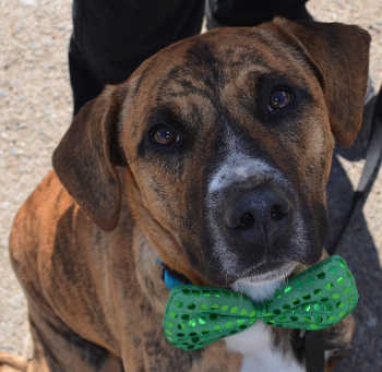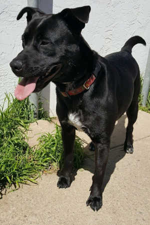 He has a mellow disposition, loves to play fetch and tug-o-war. Shelter staff said he is a “super friendly guy” who needs some leash work.