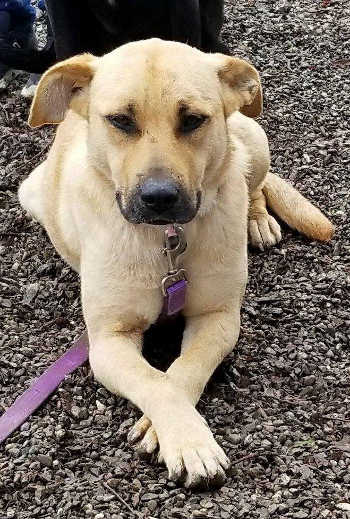 “Tory” is a 2-year-old female Lab mix. She weighs 50 pounds and has a short fawn coat.