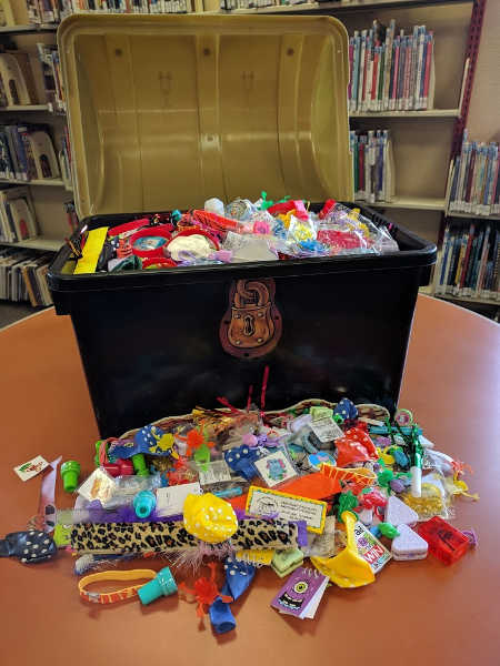 Trinkets from the treasure chest are just some of the prizes in the Lake County Library Summer Reading Program, this year open to people of all ages. The library everyone to read some books, have some fun, and maybe win a prize. Find out how at any branch of the Lake County Library. Photo courtesy of the Lake County Library.