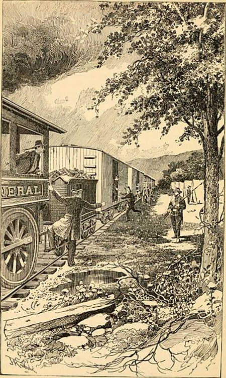 As they were frantically hauling wood aboard, the hijackers heard the telltale clunking of a racing locomotive. Looking behind them, to their horror, they saw in hot pursuit that persistent conductor and his loyal train workers.