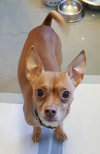 “Paco” is a 1- to 2-year-old male Chihuahua mix, weighing 12 pounds and with a short brown coat.