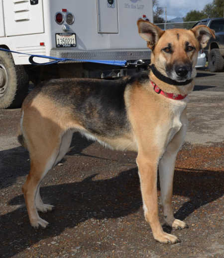 “Poppy” is a calm, lovable year-and-a-half-old shepherd mix, weighing 40 pounds.