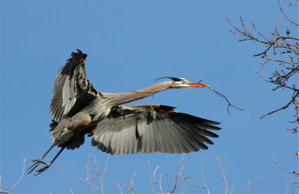 A great blue heron is carrying a stick to its nest in Lake County, Calif. Courtesy photo.