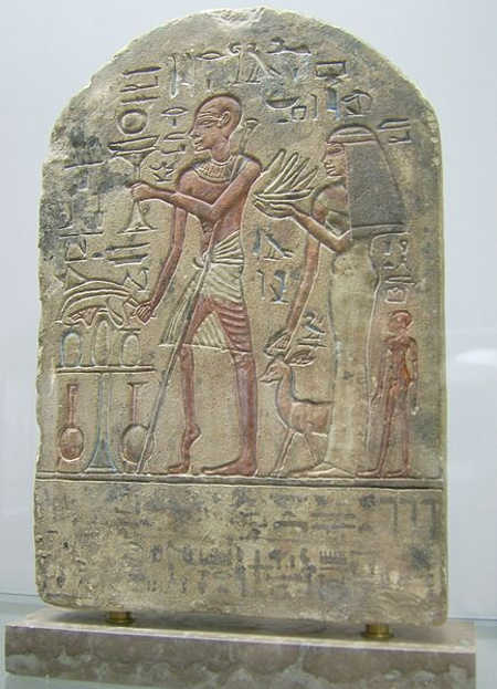 An ancient Egyptian grave marker depicting a priest with what appears to be signs of polio. Public domain/Wikimedia Commons image, https://commons.wikimedia.org/wiki/File%3AAncient_Egyptian_polio_Roma2.jpg .