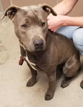 “Rocky” is a male pit bull in kennel No. 18, ID No. 9470. Photo courtesy of Lake County Animal Care and Control. ‘Rocky’
