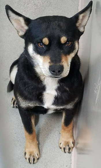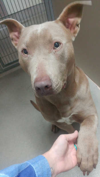 Shelter staff said he is a lovely boy who will sit on command and give you a handshake.
