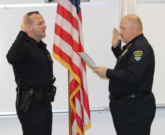 Interim Chief Tim Celli administered the oath to new Police Officer Steve Hobb during a brief Wednesday ceremony, according to City Manager Greg Folsom.