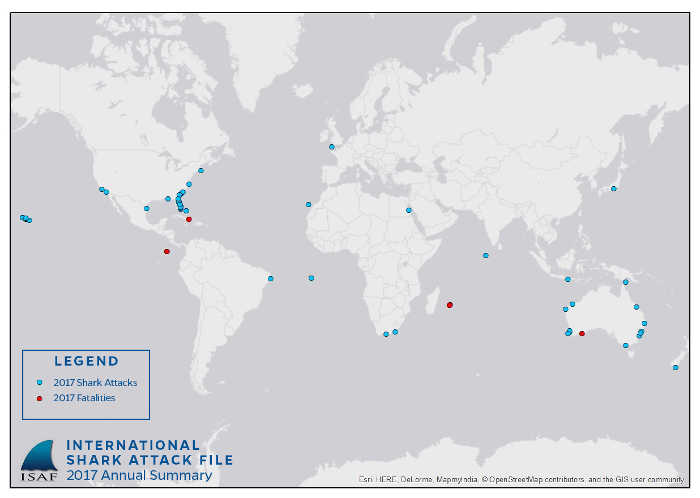 With 88 reported unprovoked shark attacks and five fatalities worldwide, 2017 was “just an average year,” according to the University of Florida International Shark Attack File.