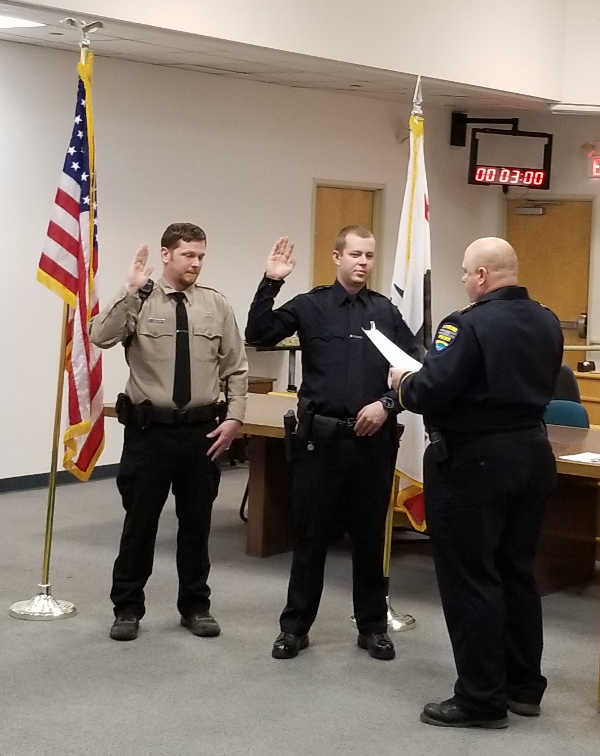 Interim Chief Tim Celli administered the oath to new Clearlake Police Officer Daniel Eagle and new animal control officer, John Moretz.